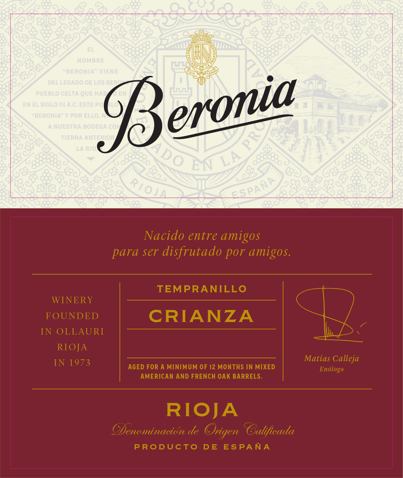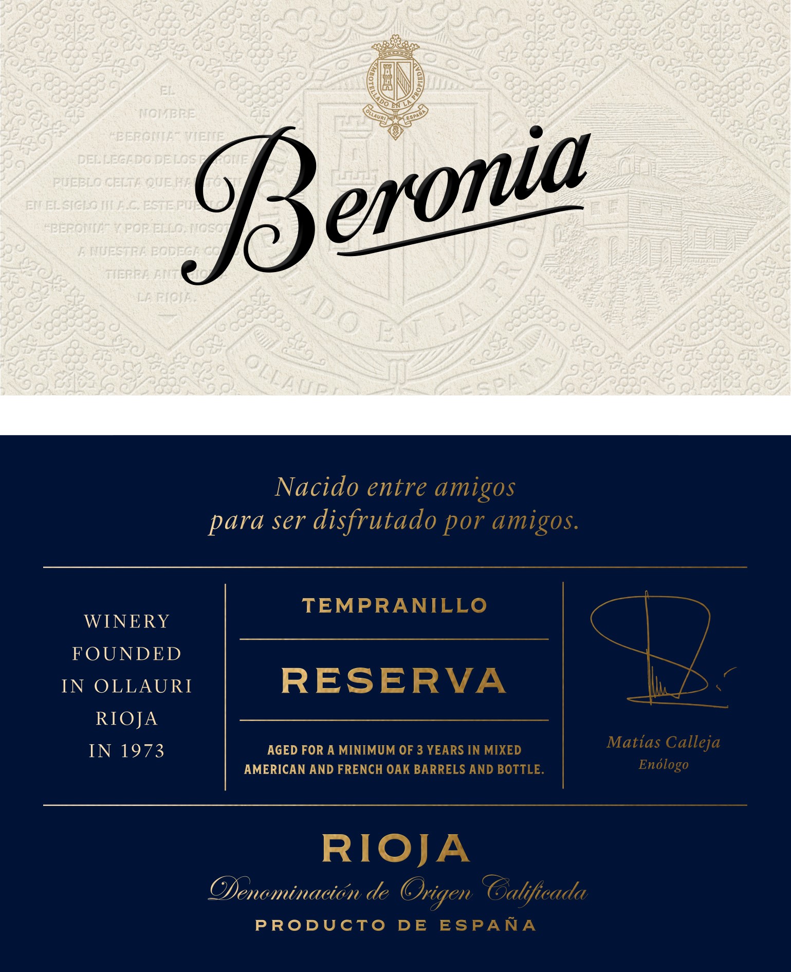 Bodegas Beronia was founded in 1973 in the Rioja Alta village of Ollauri, where the River Ebro and Cantabrian mountains shape the land. Created by friends who loved food and wine, Beronia blends Rioja tradition with modern innovation.