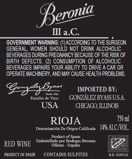 Beronia III a.C. is a powerful Tempranillo from old vineyards, offering deep black-cherry colour and intense aromas of red fruit, licorice and rose petal over notes of cedar, vanilla and cocoa. The palate is full-bodied, balanced and long, with refined tannins and a mineral backdrop that enhances its depth, personality and ageing potential.