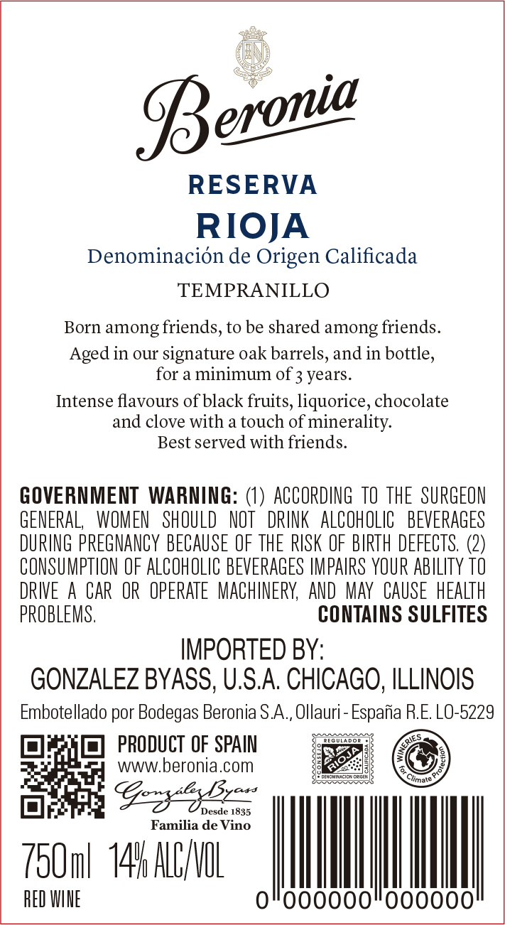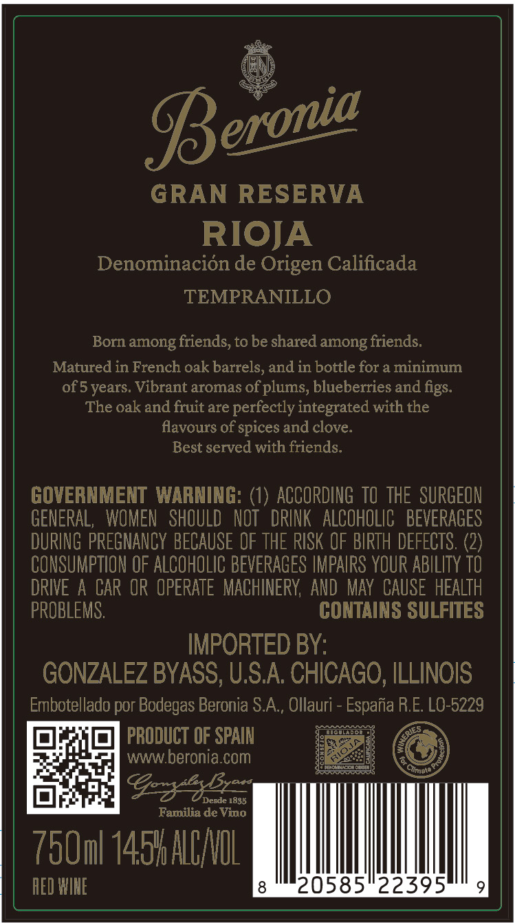 Beronia Gran Reserva embodies the elegance of Rioja’s finest vineyards. Crafted from carefully selected Tempranillo and Graciano, it is aged extensively in French oak to achieve depth, balance, and complexity. Aromas of ripe fruit, cocoa, spice, and tobacco lead to a structured, harmonious palate with refined tannins and a long, expressive finish.