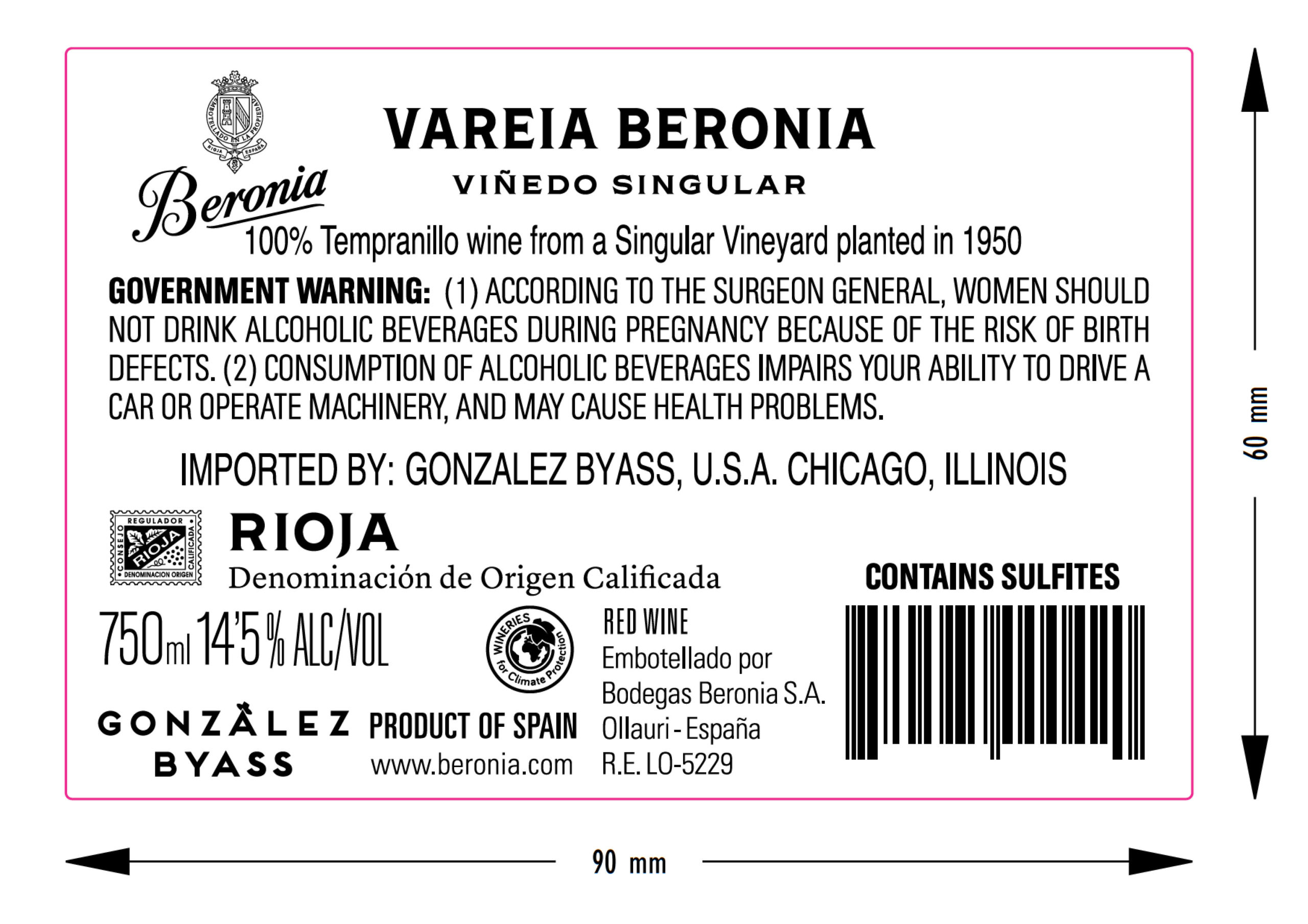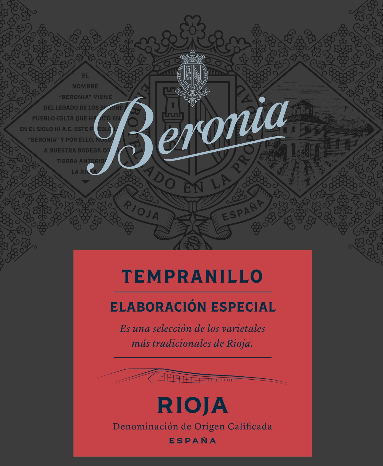 Vareia Beronia is a Singular Vineyard Tempranillo from pebble-rich clay-limestone soils, offering low yields and intense character. Deep and complex, it shows aromas of red fruit, licorice and dried spice over subtle cocoa notes. The palate is full-bodied, balanced and persistent, revealing fine structure and the pure expression of Rioja Tempranillo.