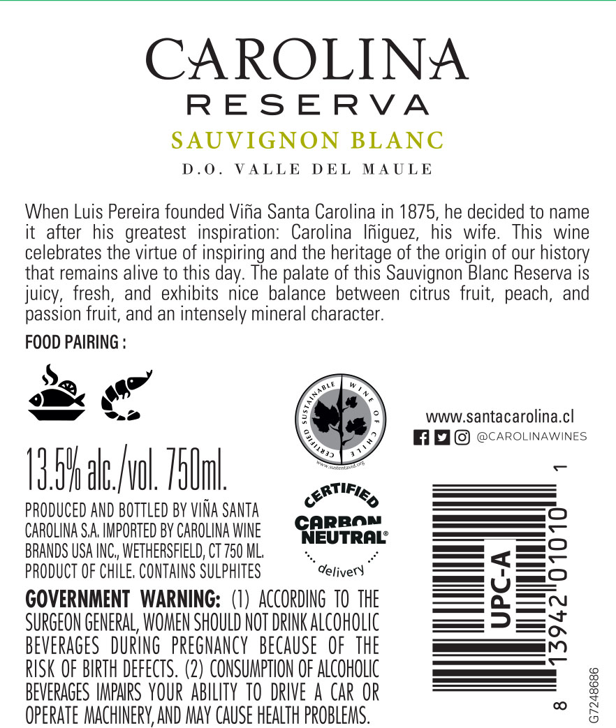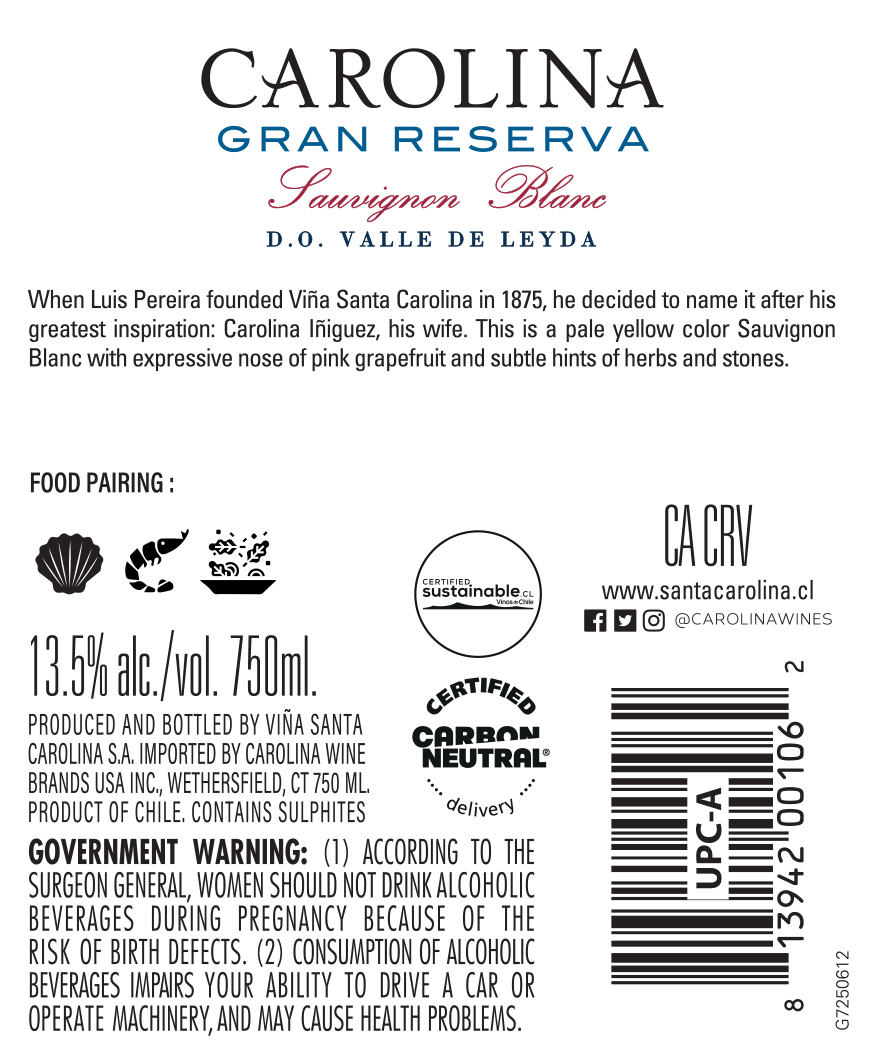 Carolina Gran Reserva Sauvignon Blanc expresses the elegance of Leyda Valley, shaped by Pacific breezes and granitic soils. Pale yellow in color, it reveals an expressive nose of pink grapefruit, fresh herbs and subtle mineral notes. The palate is juicy and vibrant, with crisp acidity, balanced citrus and stone fruit flavors, and a creamy texture gained from lees aging. Fresh, precise and refined, it is an outstanding wine for pairing with seafood, oysters and ceviche.