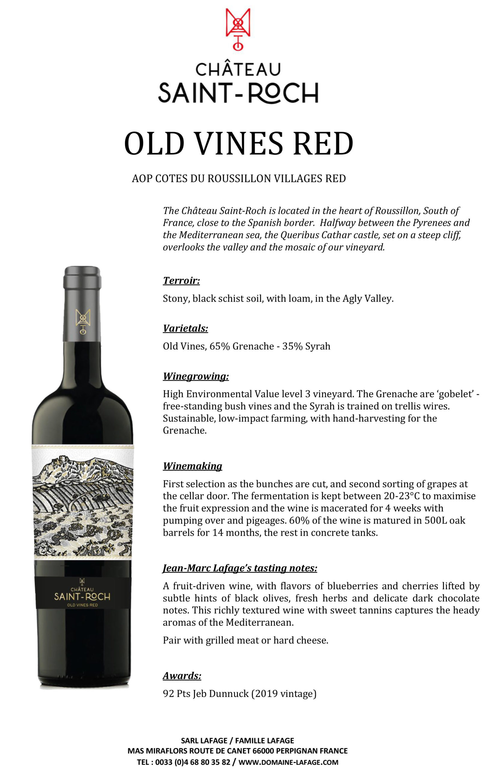 For over two centuries, the La-Fage family has been rooted in the rugged, beautiful lands of Roussillon. It is a legacy of worldly and generational knowledge, rooted in Roussillon, which forms the very soul of Château Saint-Roch. After traveling the globe as an acclaimed international winemaker, Jean-Marc Lafage felt the powerful pull of his family's origins, returning in 2005 to acquire the estate in the ancient village of Maury. His return was not just a business decision; it was a homecoming.