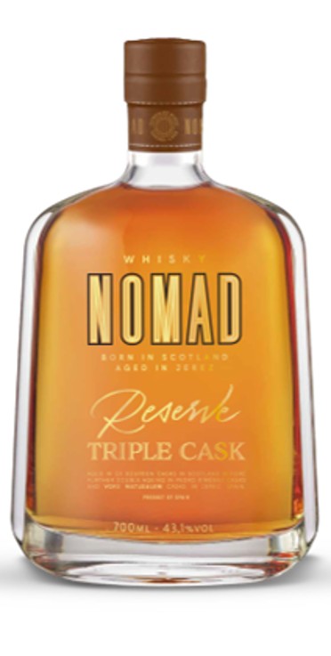 NOMAD RESERVE 10 YEARS - TRIPLE CASK, Born in Scotland, in barrels that contained Bourbon where it rests for 6 years. Then the liquid travels to Jerez where it will have a double aging: first, 2 years in casks that have previously contained PX and then, 2 more years in casks from the renowned Oloroso Matusalem.