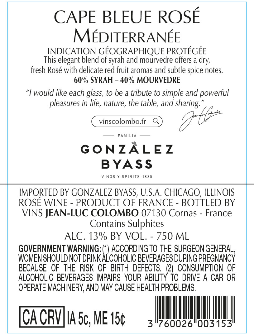 Cape Bleue Rosé captures the pure freshness of Provence. Produced by Jean-Luc Colombo, this elegant rosé blends Syrah and Mourvèdre grown on light limestone soils under Mediterranean influence. Pale pink and crystal clear, it offers aromas of peach, rose petals and soft spice. Crisp yet round on the palate, with red fruit notes and vibrant acidity, it is the perfect wine to enjoy chilled on warm summer days.