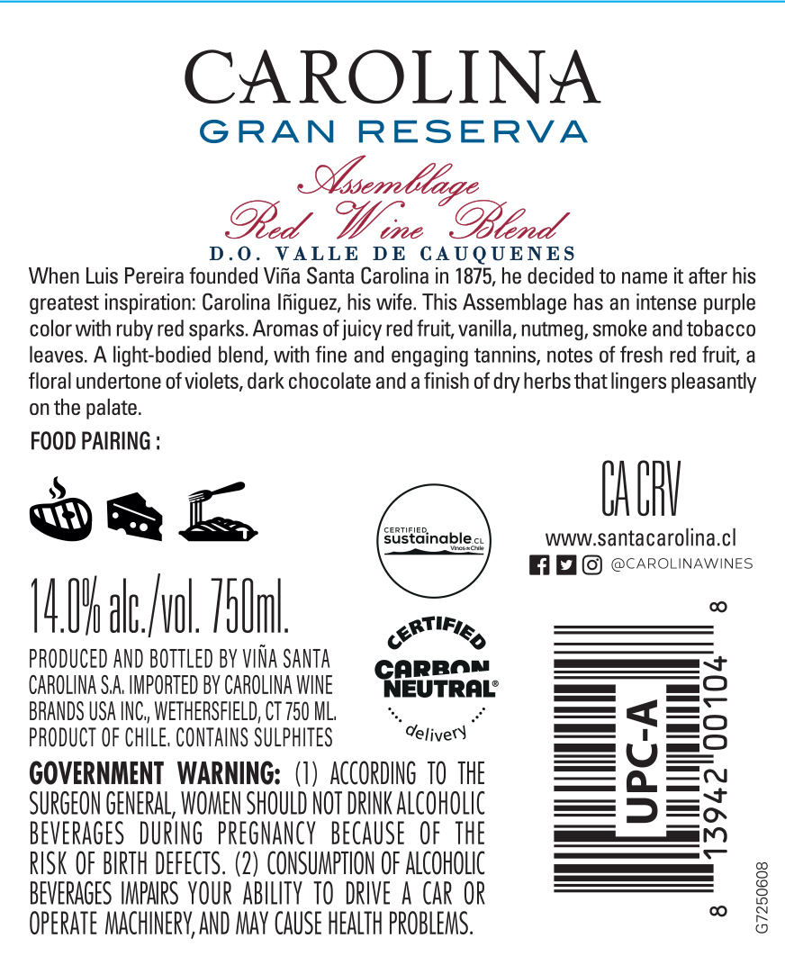Carolina Gran Reserva Assemblage is a refined blend that expresses the depth and balance of the Cauquenes Valley. Crafted from Malbec and Cabernet Sauvignon, it reveals intense aromas of ripe red fruit, vanilla, spice and subtle notes of tobacco. The palate is elegant and well-structured, with fine tannins, vibrant acidity and a long, persistent finish that reflects careful oak aging and the character of its origin.