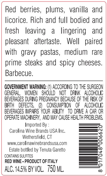 Nizza DOCG Favá is a powerful and refined expression of Barbera from Agliano Terme, sourced from Tenuta Garetto’s finest plots. Fermented in stainless steel and cement, it is aged in cement and oak barrels, with around 22 months in wood, achieving depth and precision. The wine shows intense red fruit, dark cherry and plum, supported by spice and balsamic nuances, with vibrant acidity and a long, structured finish.